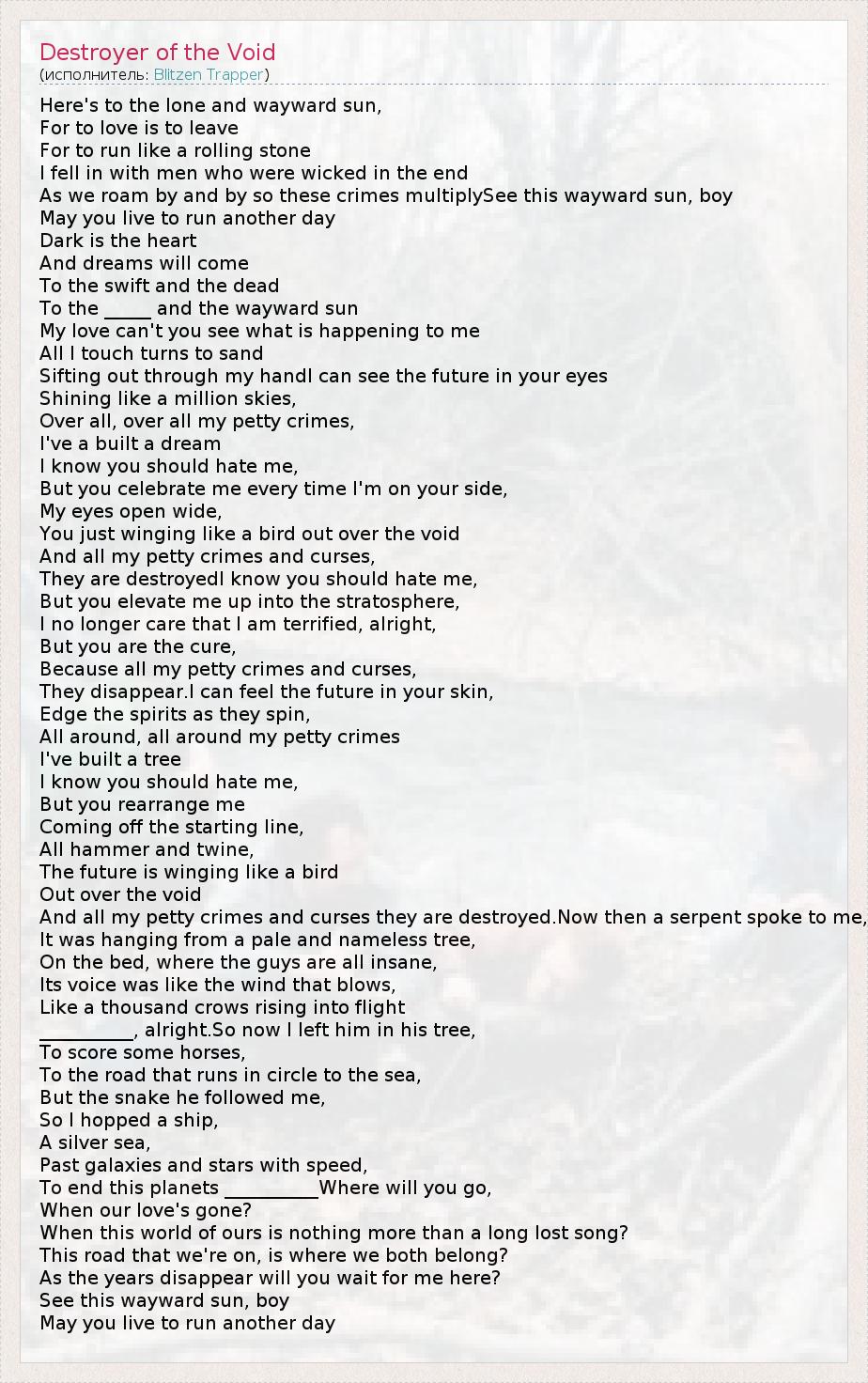 А как ты думаешь, о чем песня "Destroyer of the Void" ?