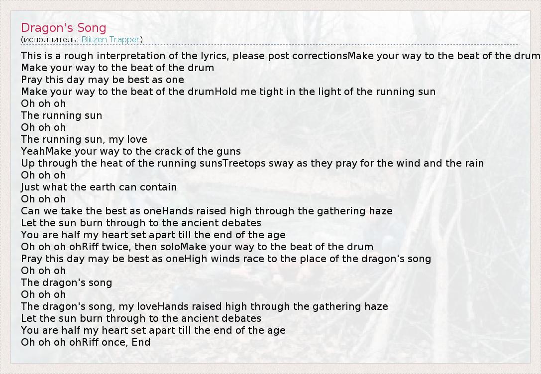 А как ты думаешь, о чем песня "Dragon's Song" ?