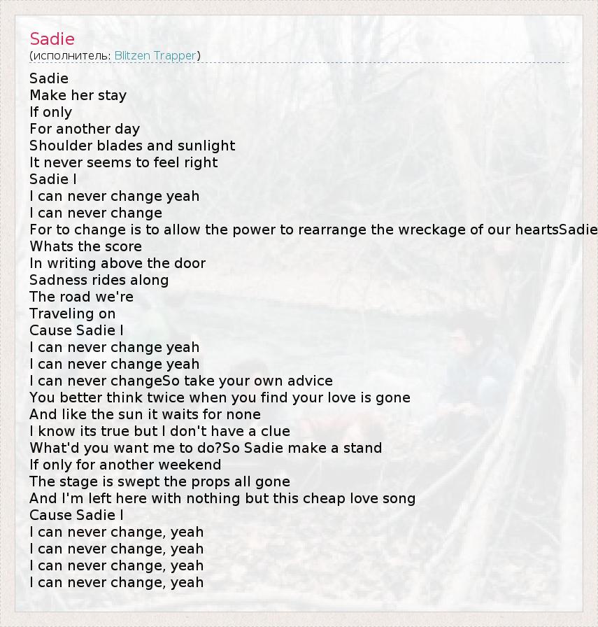 А как ты думаешь, о чем песня "Sadie" ?