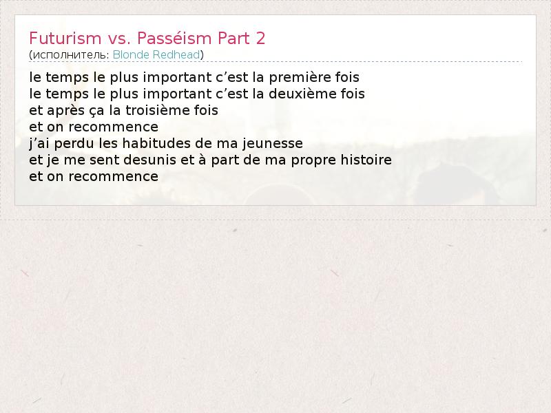 А как ты думаешь, о чем песня "Futurism vs. Passéism Part 2" ?
