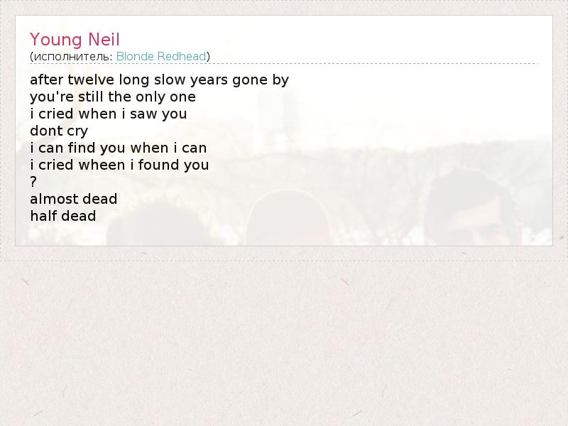 after twelve long slow years gone by you're still the only one i cried when i saw you dont cry i can find you when i can i cried wheen i found you ? almost dead half dead