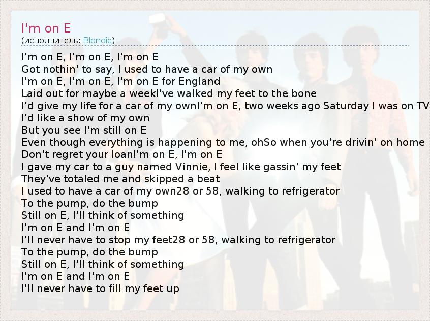 Это интересно:Blondie — самый коммерчески успешный американский музыкальный коллектив «новой волны», который записывал электронную музыку c элементами панка, диско, регги и других стилей. Группа была основана Деборой (Дебби) Харри (Deborah Harry) и Крисом Стейном (Chris Stein) в Нью-Йорке в августе 1974 года.Блонди выпустили более 25 синглов, среди них такие международные хиты... продолжение