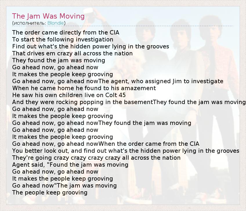 А как ты думаешь, о чем песня "The Jam Was Moving" ?