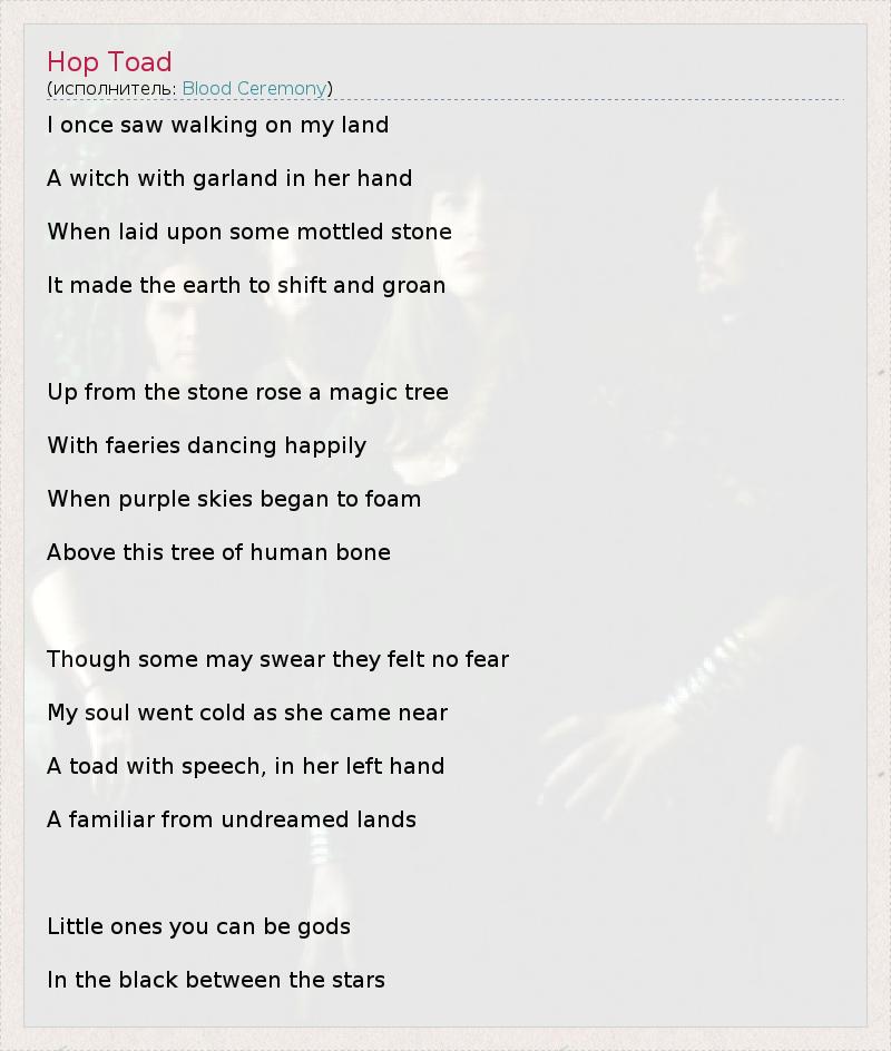 А как ты думаешь, о чем песня "Hop Toad" ?