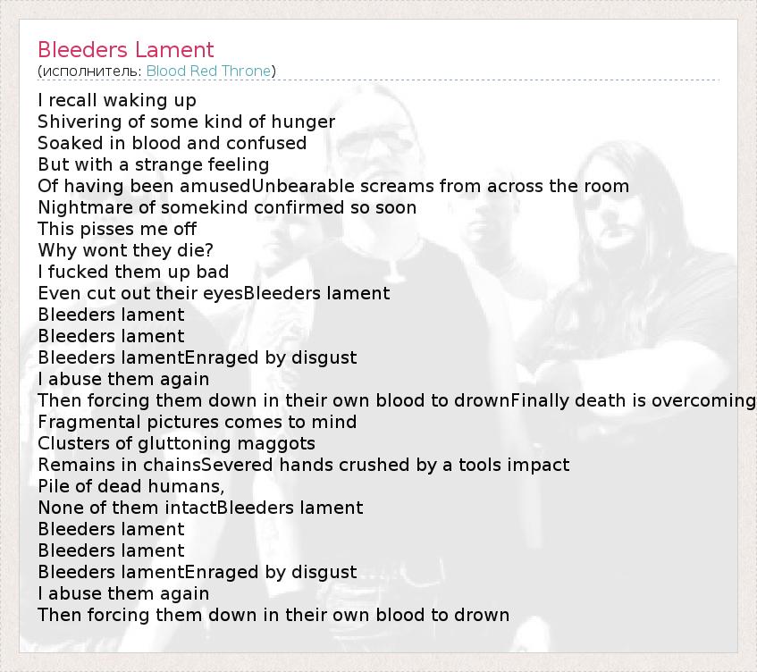 А как ты думаешь, о чем песня "Bleeders Lament" ?