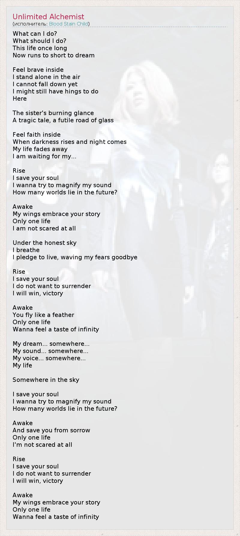 А как ты думаешь, о чем песня "Unlimited Alchemist" ?