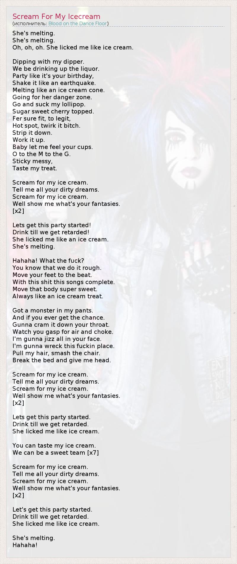 А как ты думаешь, о чем песня "Scream For My Icecream" ?