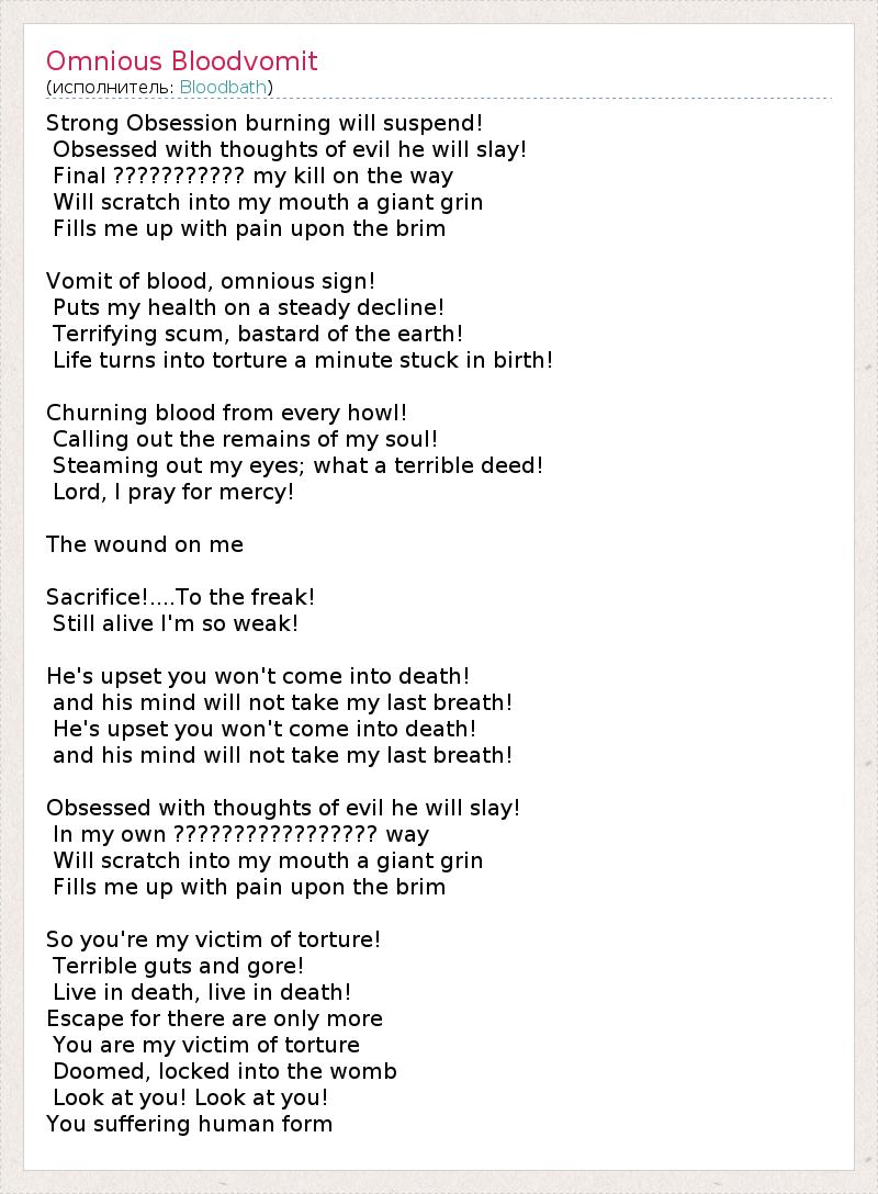 А как ты думаешь, о чем песня "Omnious Bloodvomit" ?