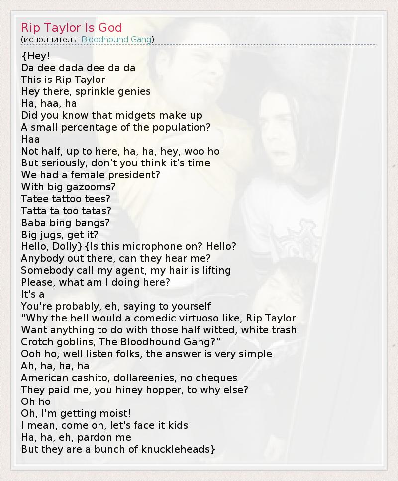 А как ты думаешь, о чем песня "Rip Taylor Is God" ?