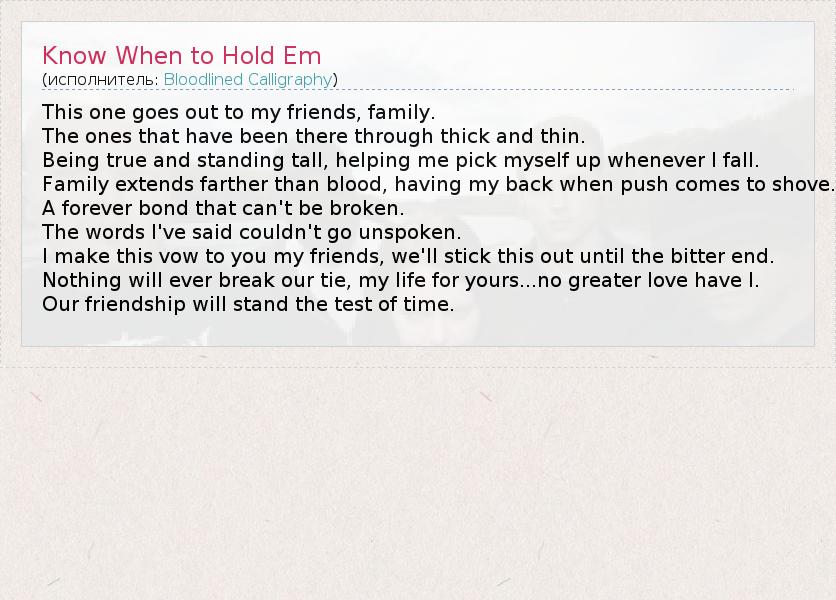 А как ты думаешь, о чем песня "Know When to Hold Em" ?
