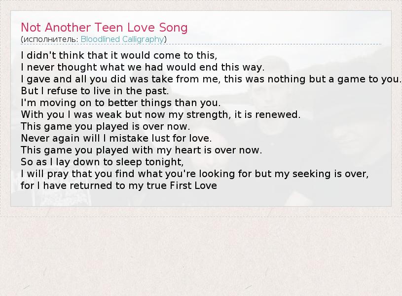 А как ты думаешь, о чем песня "Not Another Teen Love Song" ?