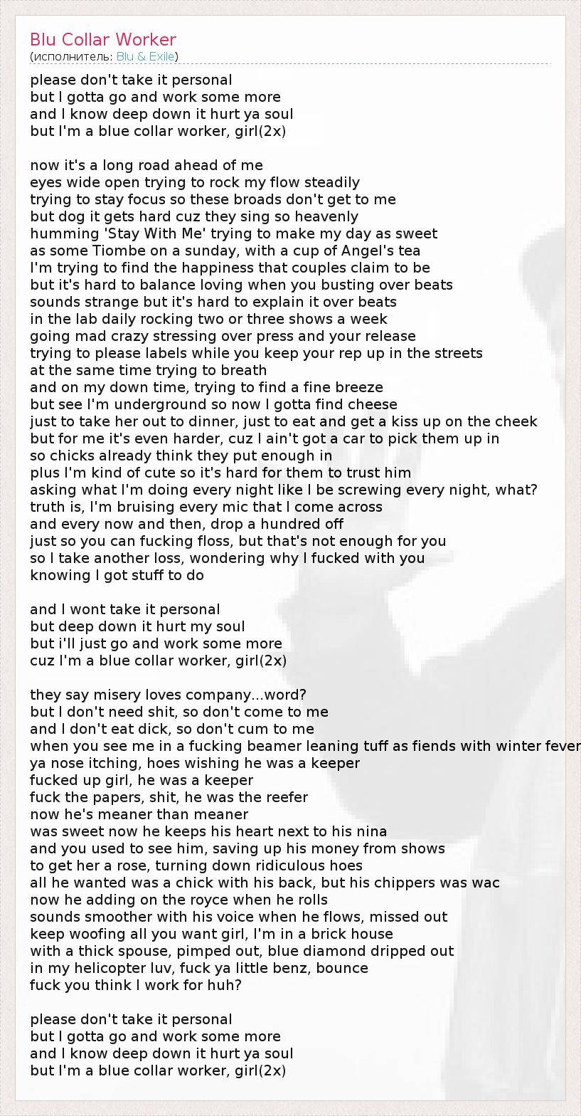 А как ты думаешь, о чем песня "Blu Collar Worker" ?