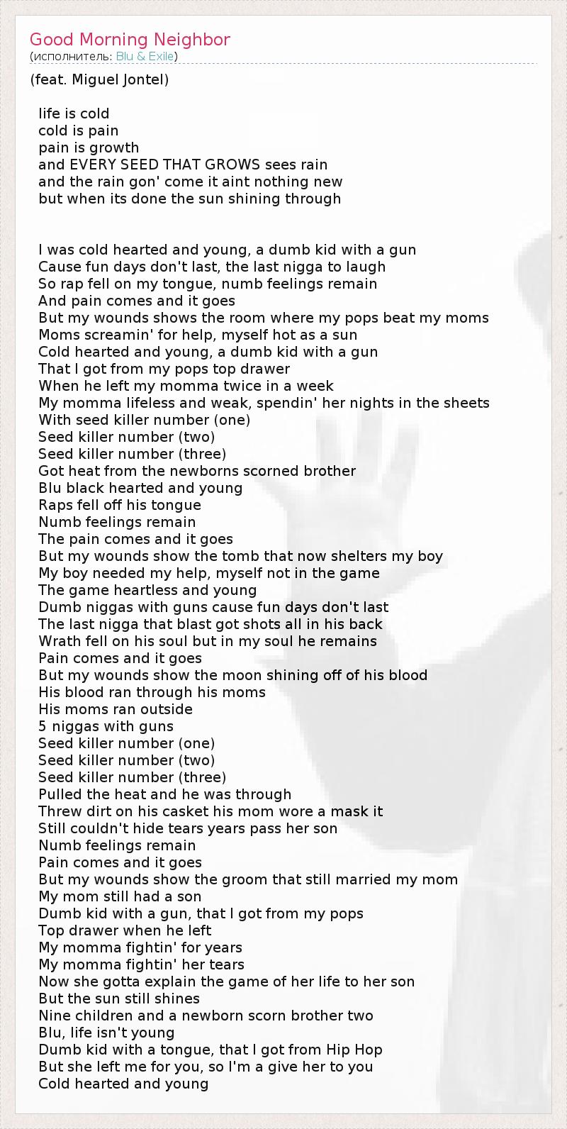 А как ты думаешь, о чем песня "Good Morning Neighbor" ?