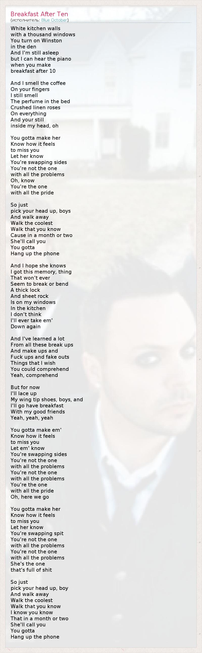 А как ты думаешь, о чем песня "Breakfast After Ten" ?