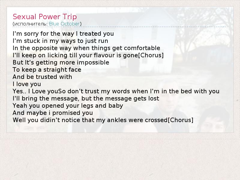 А как ты думаешь, о чем песня "Sexual Power Trip" ?