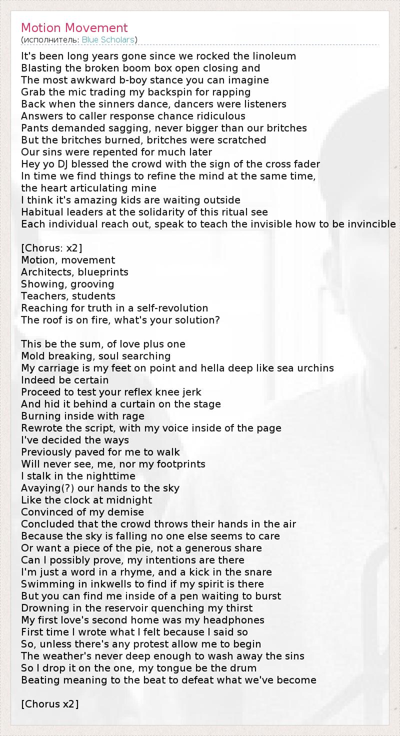А как ты думаешь, о чем песня "Motion Movement" ?