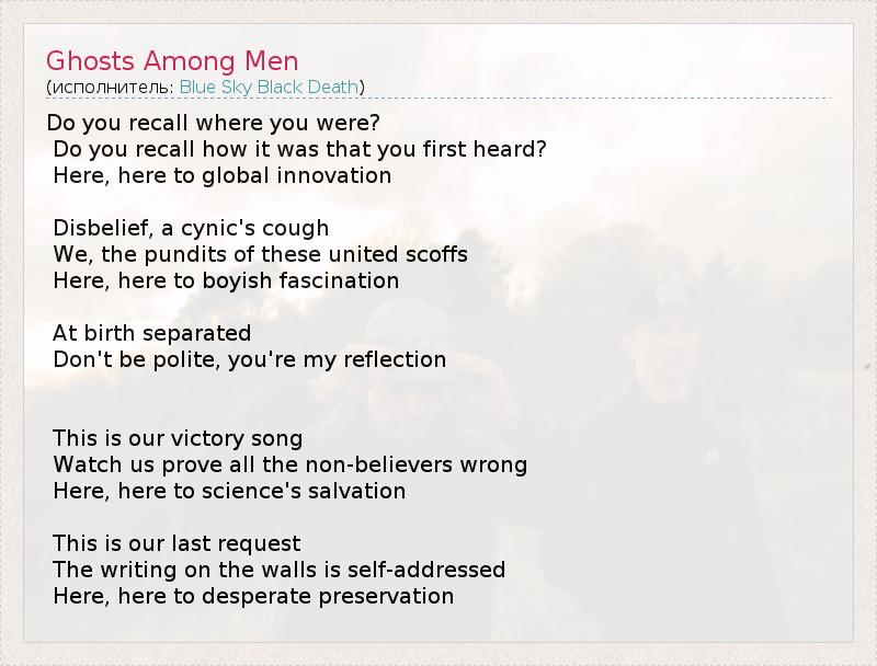 А как ты думаешь, о чем песня "Ghosts Among Men" ?