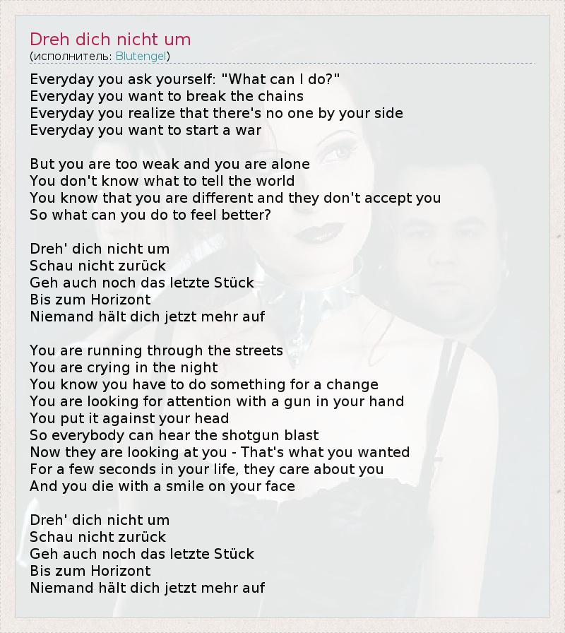А как ты думаешь, о чем песня "Dreh dich nicht um" ?