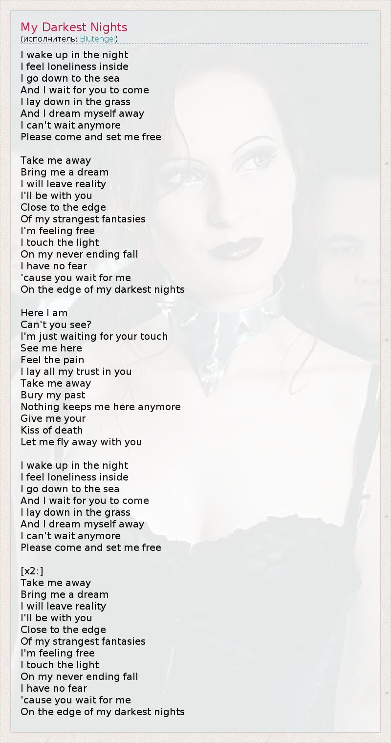 А как ты думаешь, о чем песня "My Darkest Nights" ?