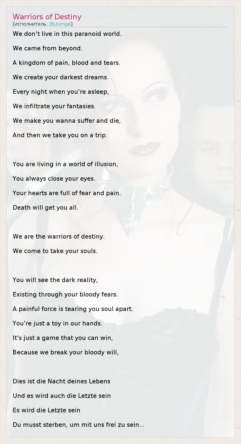 А как ты думаешь, о чем песня "Warriors of Destiny" ?