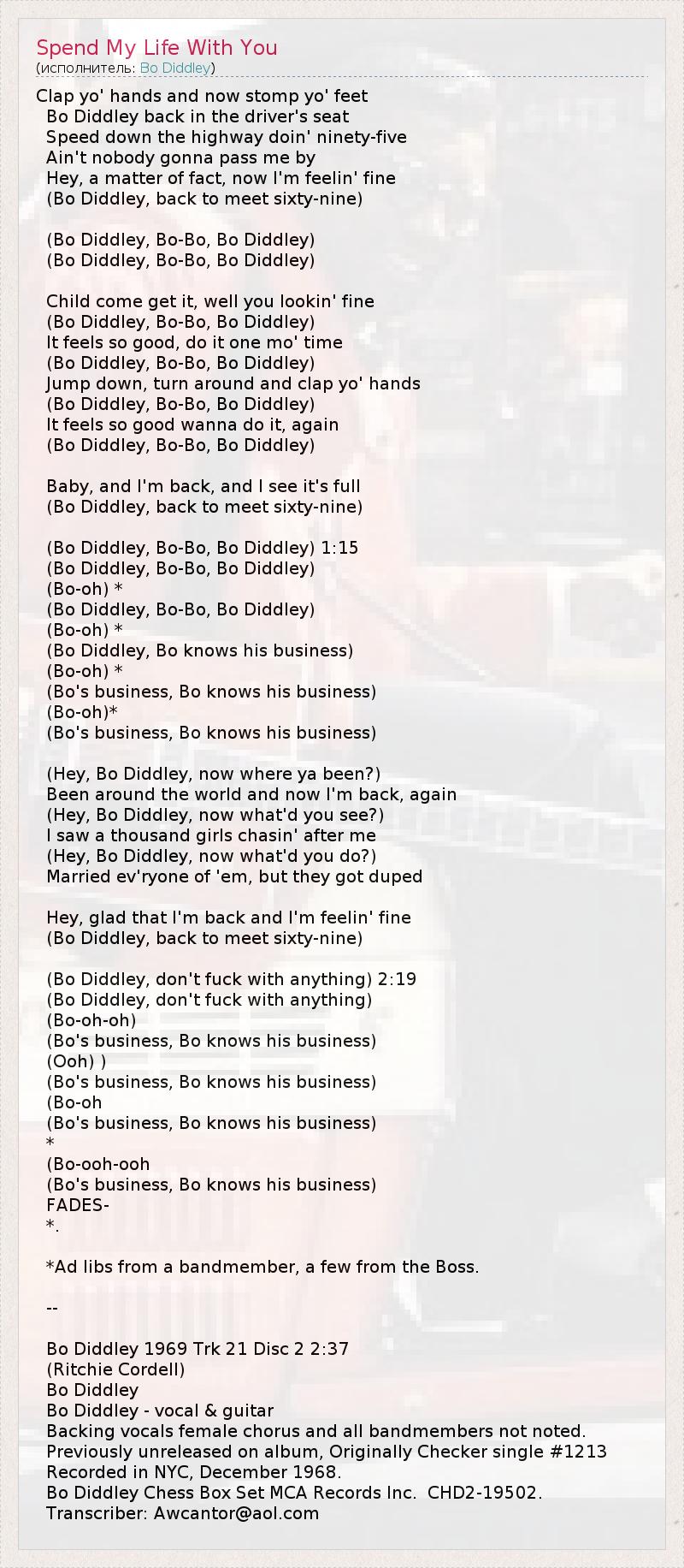 ГлавнаяИсполнителиBo DiddleySpend My Life With You