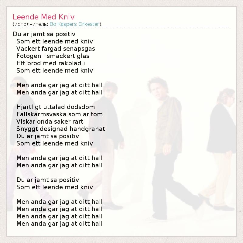 А как ты думаешь, о чем песня "Leende Med Kniv" ?