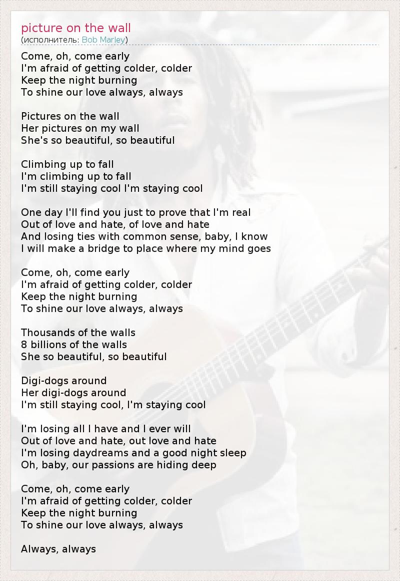 А как ты думаешь, о чем песня "picture on the wall" ?