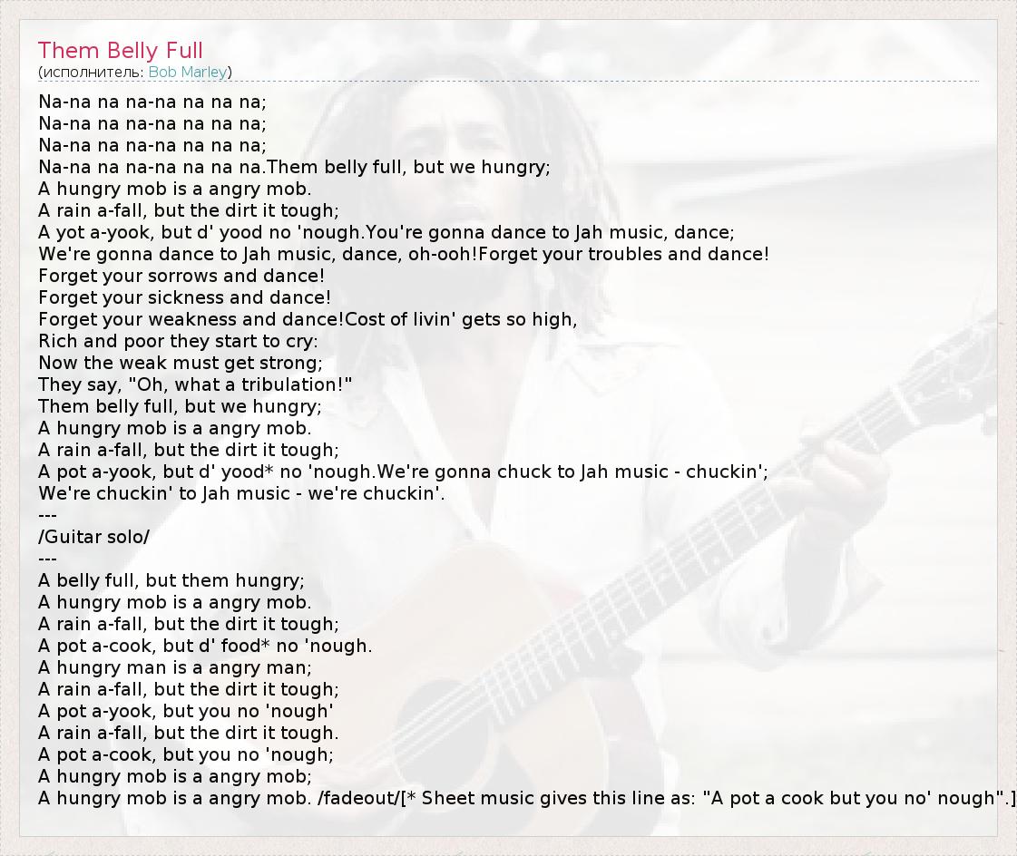 А как ты думаешь, о чем песня "Them Belly Full" ?