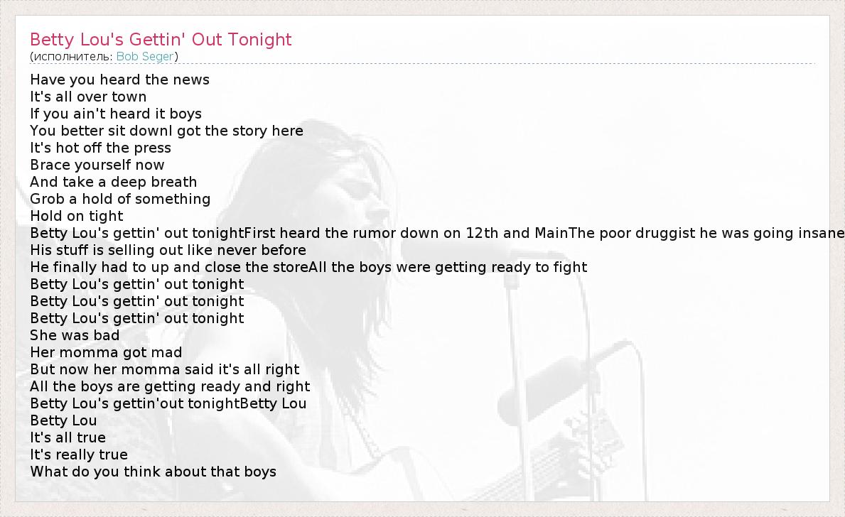 А как ты думаешь, о чем песня "Betty Lou's Gettin' Out Tonight" ?