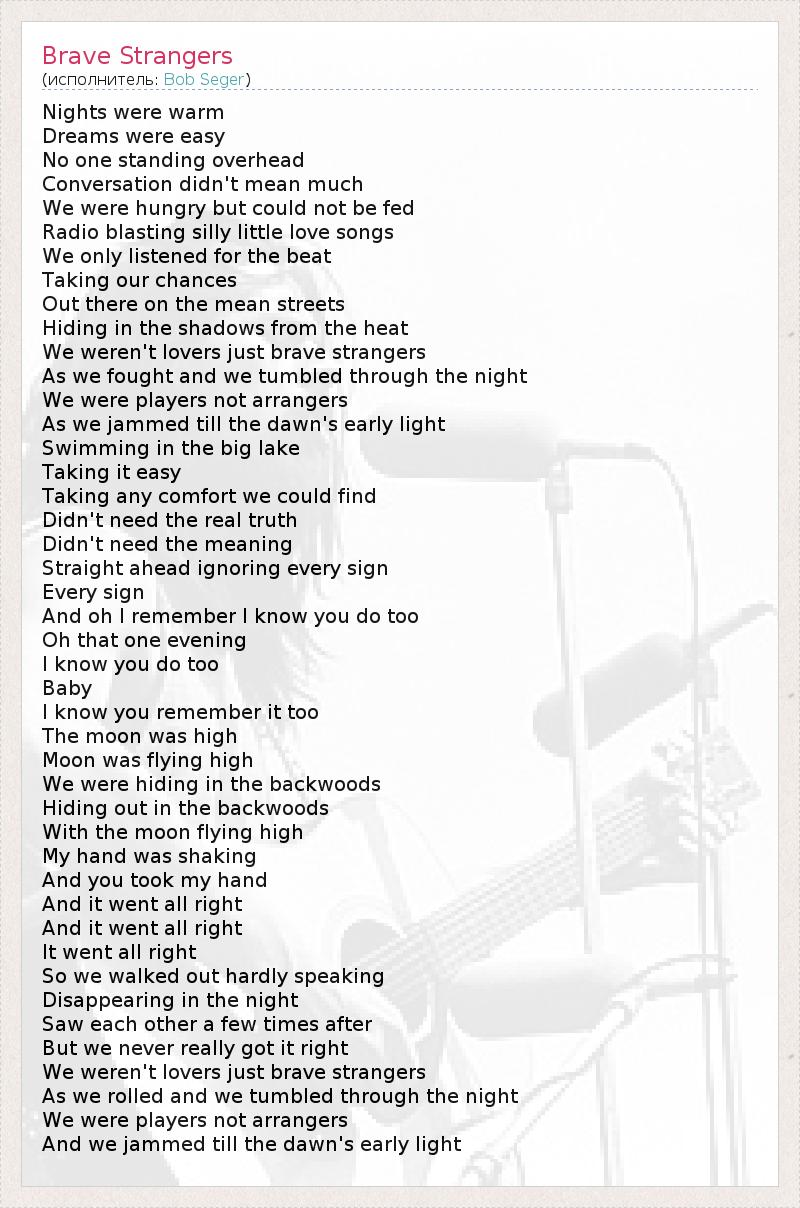 А как ты думаешь, о чем песня "Brave Strangers" ?