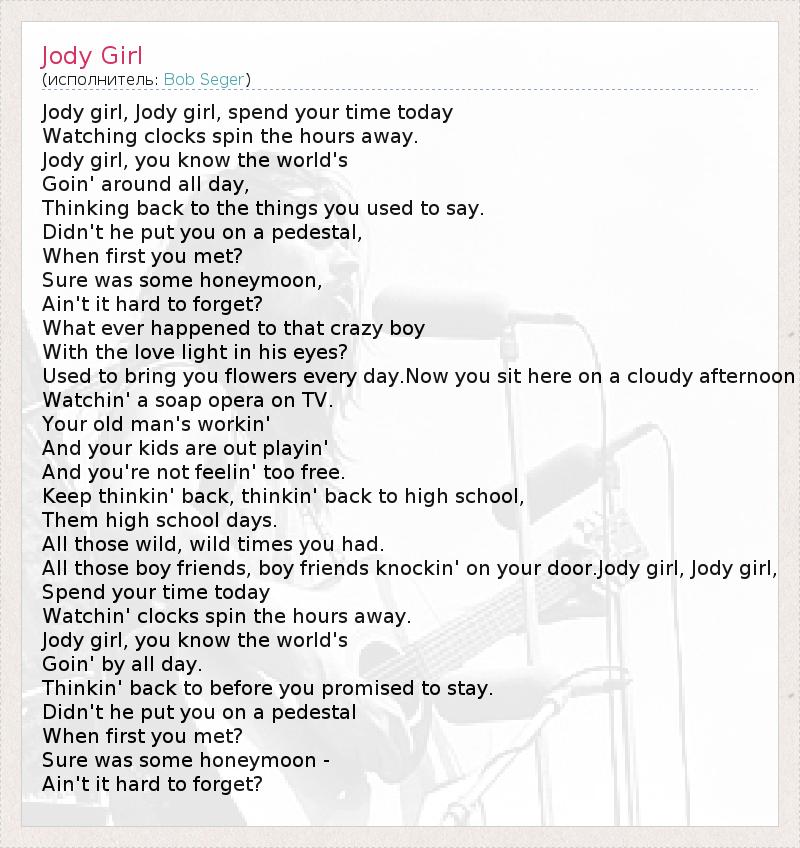 А как ты думаешь, о чем песня "Jody Girl" ?
