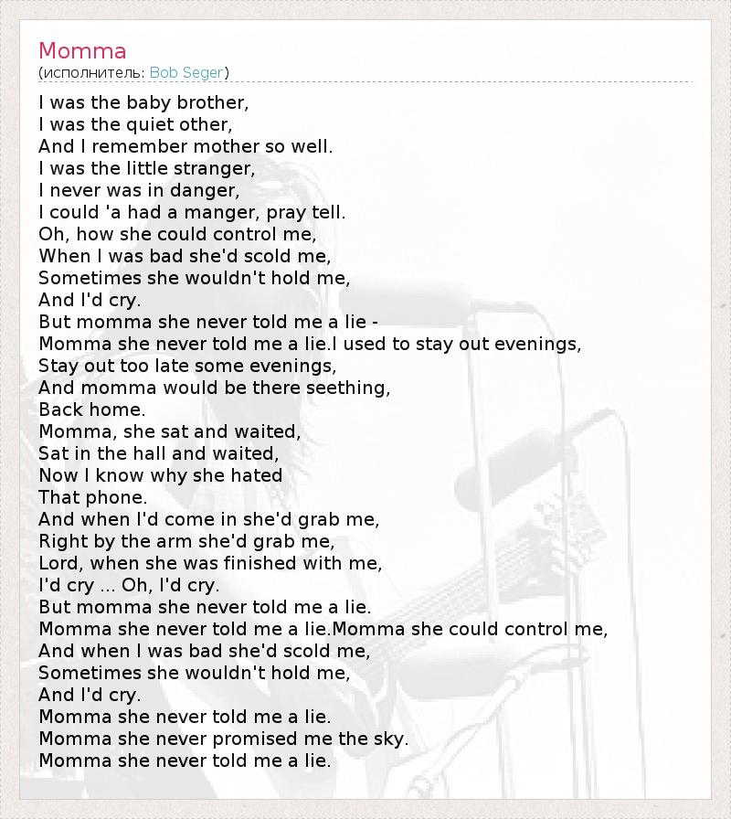 Momma she never told me a lie.Momma she could control me,