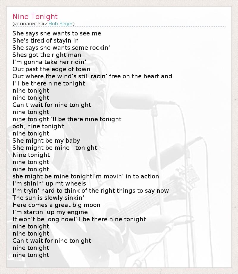 nine tonightI'll be there nine tonight