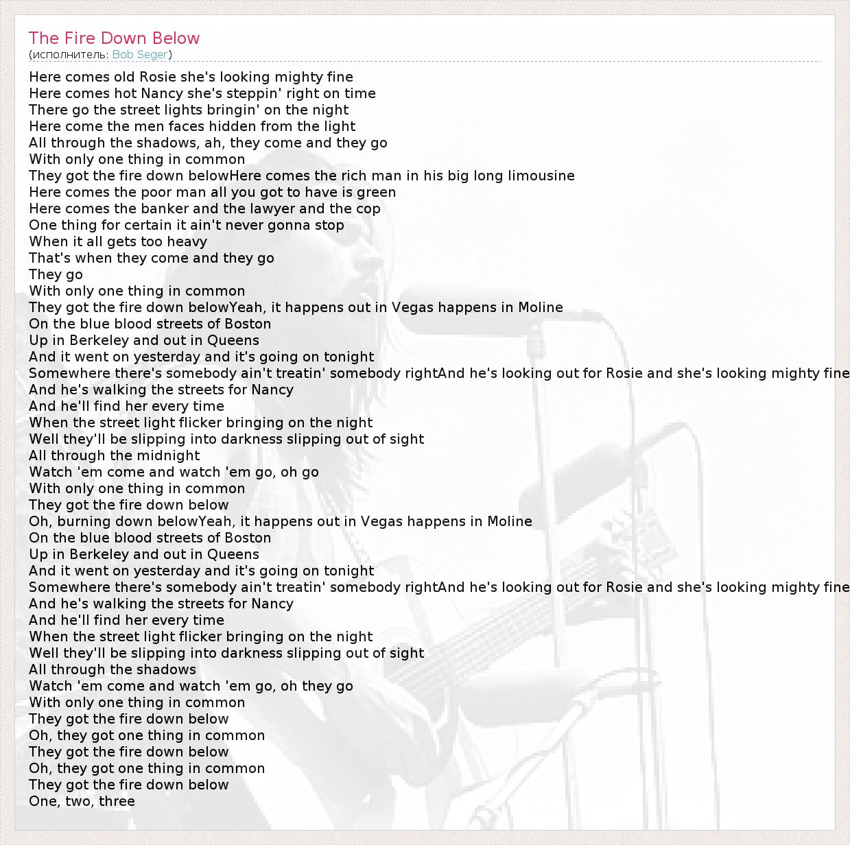 А как ты думаешь, о чем песня "The Fire Down Below" ?