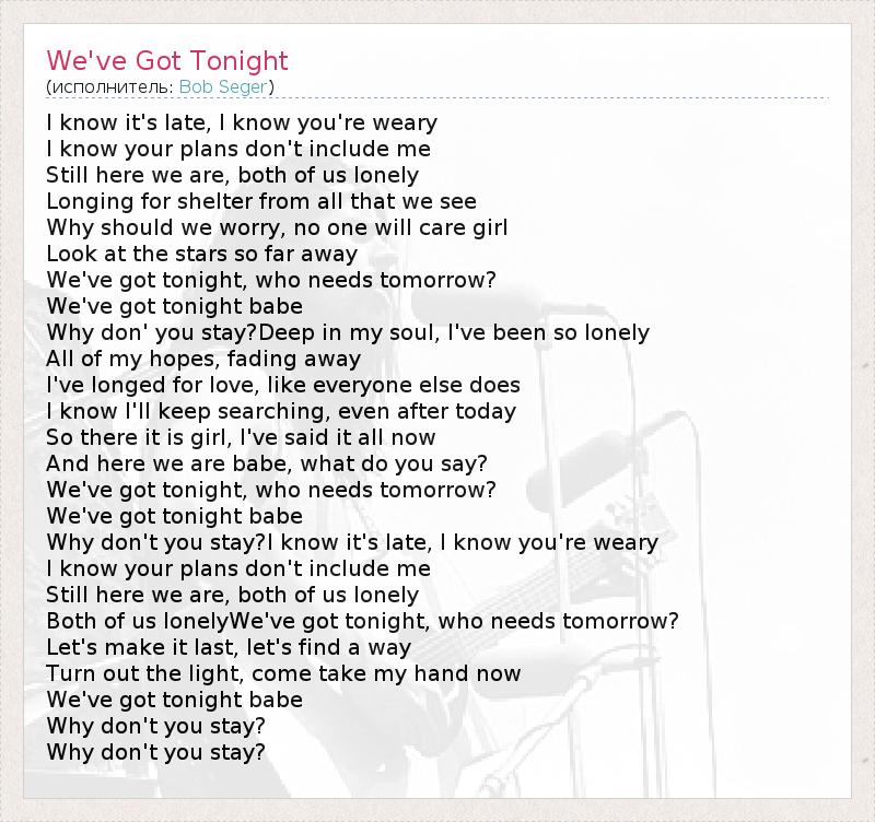 А как ты думаешь, о чем песня "We've Got Tonight" ?