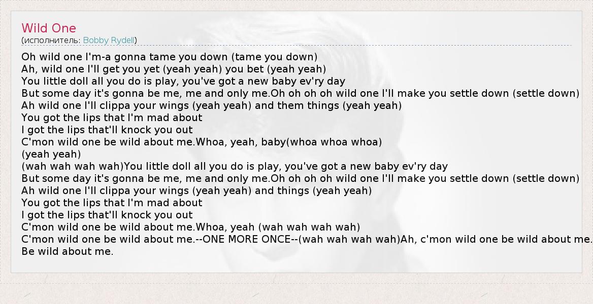 А как ты думаешь, о чем песня "Wild One" ?