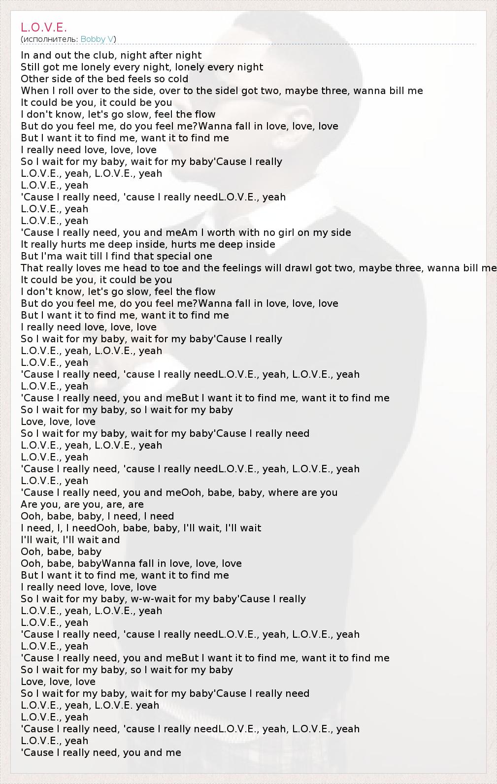 'Cause I really need, 'cause I really needL.O.V.E., yeah