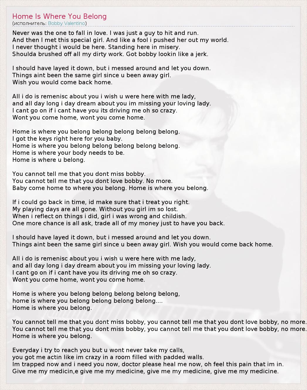 А как ты думаешь, о чем песня "Home Is Where You Belong" ?