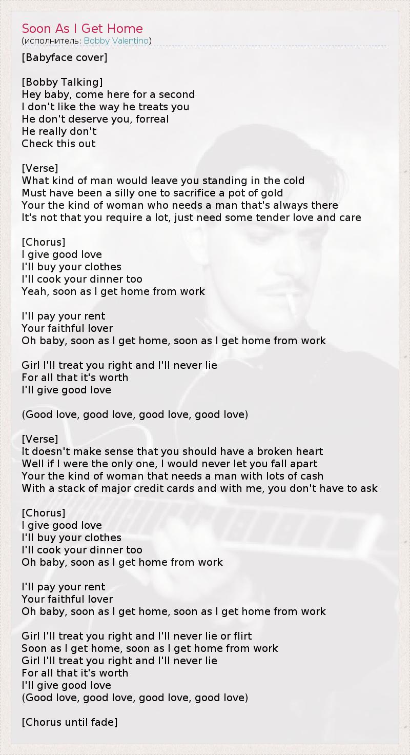 Oh baby, soon as I get home, soon as I get home from work
