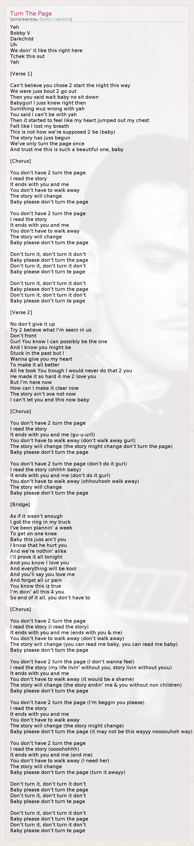 Baby please don't turn the page (it may not be this wayyy noooouhoh way)