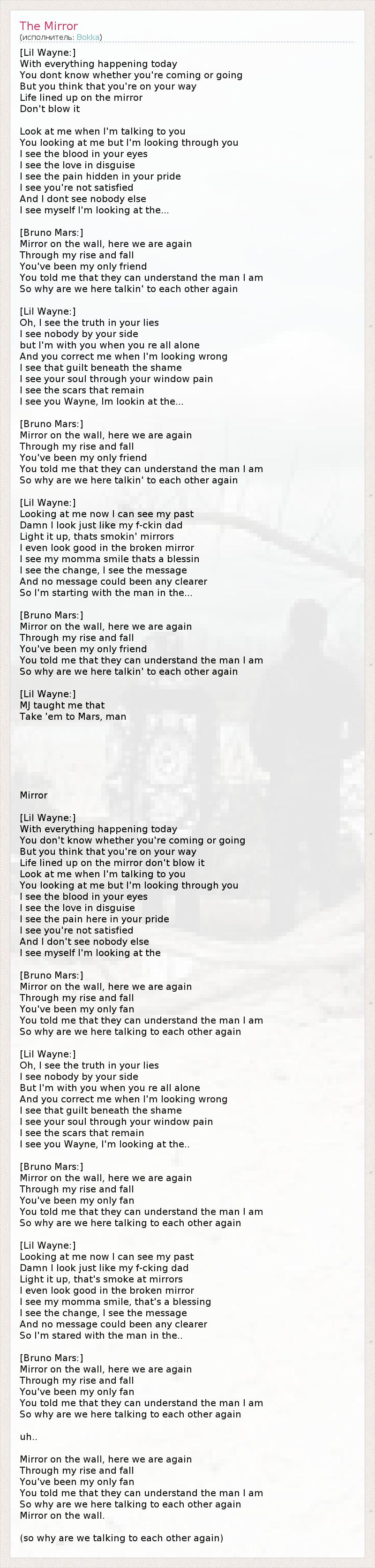 А как ты думаешь, о чем песня "The Mirror" ?