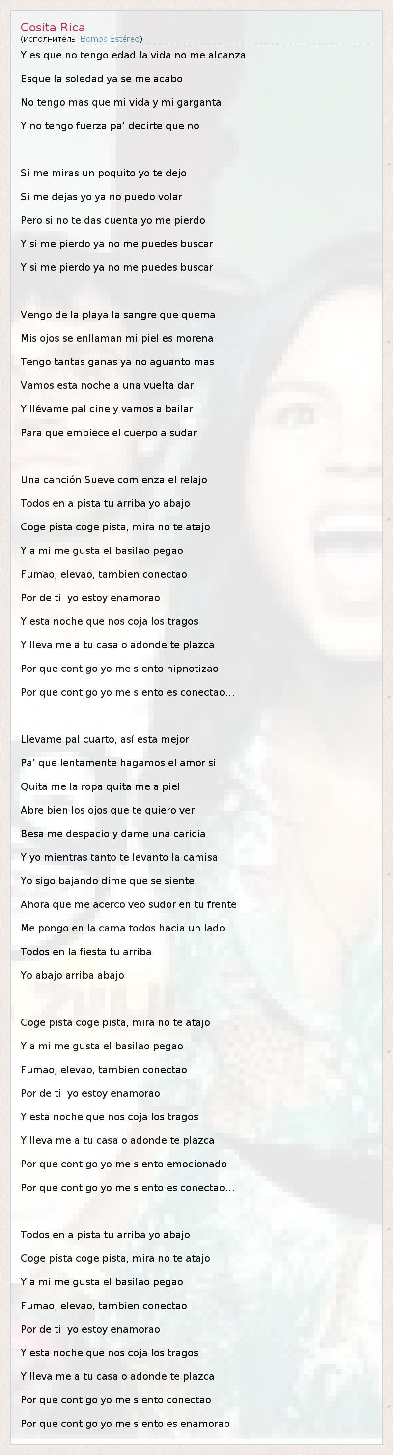 А как ты думаешь, о чем песня "Cosita Rica" ?