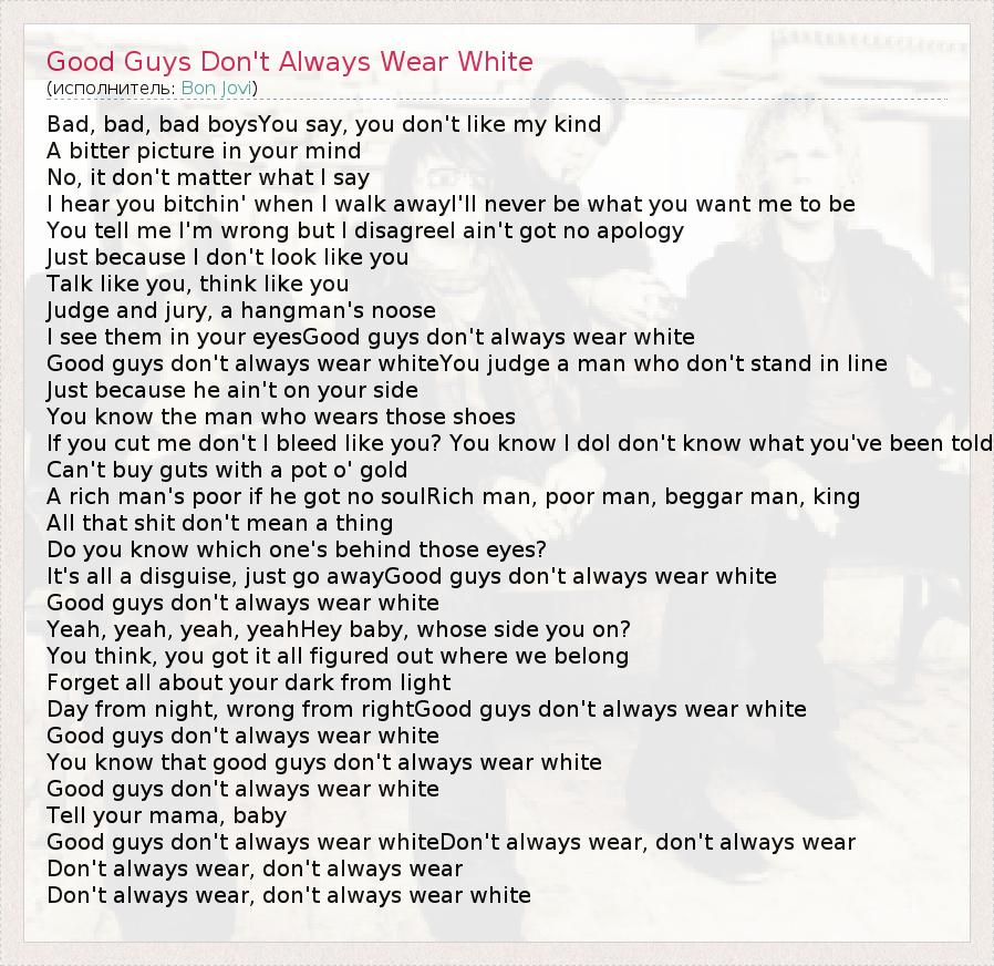 ГлавнаяИсполнителиBon JoviGood Guys Don't Always Wear White