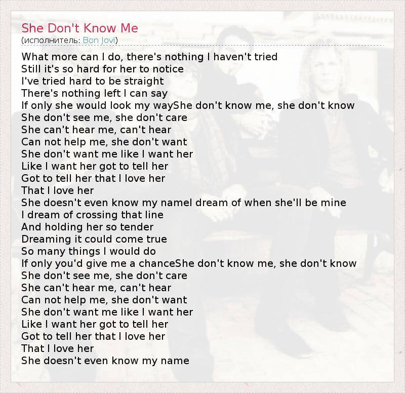 She Don't Know Me