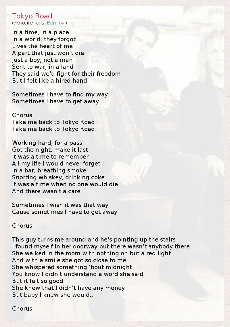 А как ты думаешь, о чем песня "Tokyo Road" ?
