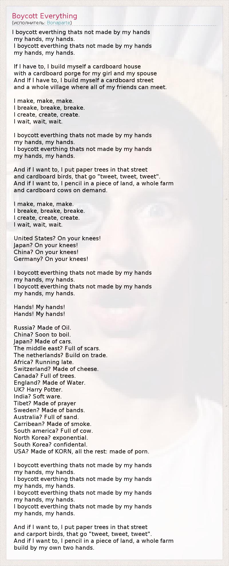 А как ты думаешь, о чем песня "Boycott Everything" ?