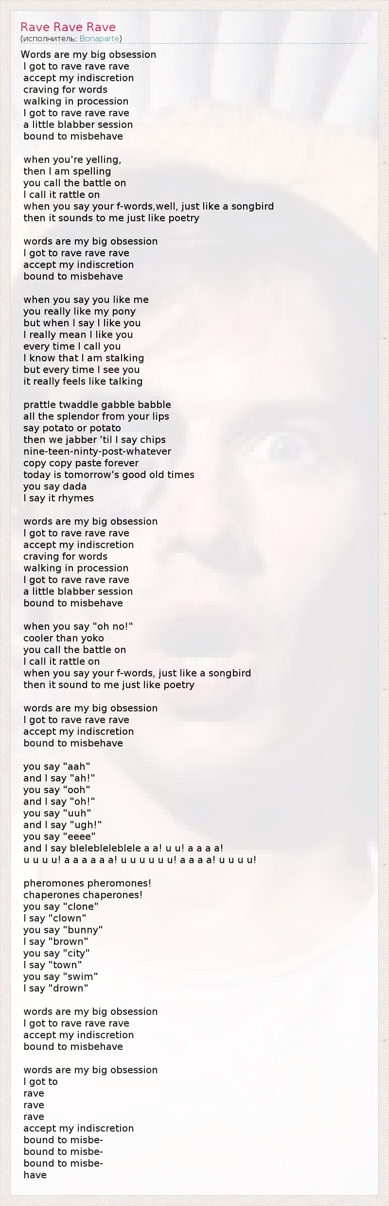 А как ты думаешь, о чем песня "Rave Rave Rave" ?