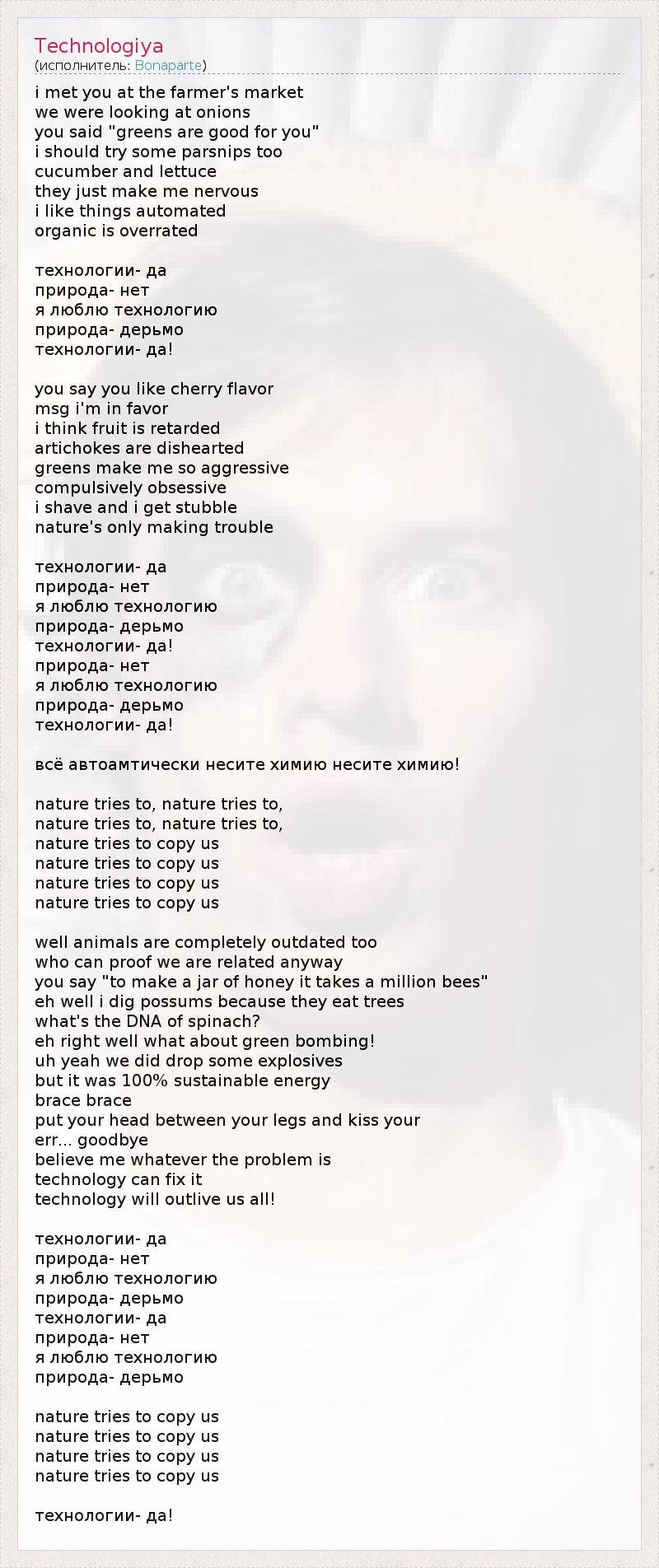 Это интересно:ВидеовыпускПанк-группа Bonaparte называет себя "трэш / визуалка / цирк / армия гедонистов", что в общем-то правдоподобно, а также "японская классическая музыка". В арсенале, по их словам: нижние чакры, громкие звуки, привидения, огонь и соблазн, панамский поцелуй смерти… В целом нескучная lo-fi смесь панк-рока... продолжение