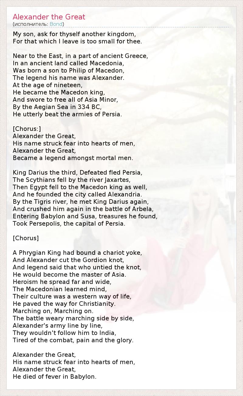 А как ты думаешь, о чем песня "Alexander the Great" ?