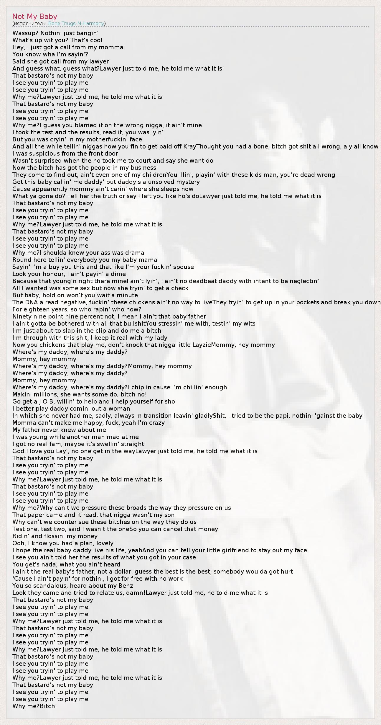 А как ты думаешь, о чем песня "Not My Baby" ?